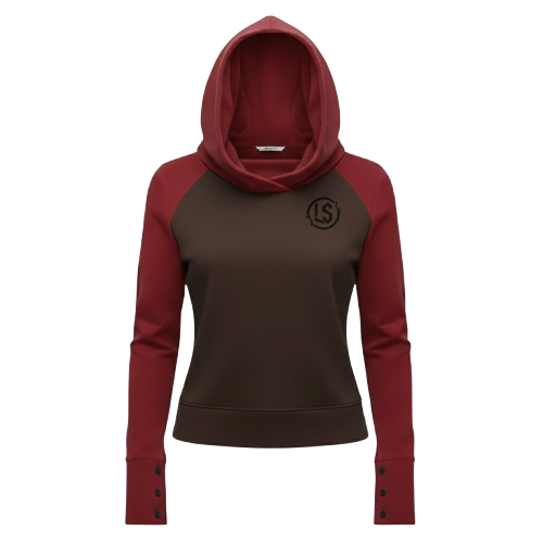 Embrace rich, autumnal tones with this fashionable pullover from Lupix Studios. Designed for supreme comfort and elevated style, this hoodie features a dynamic color block design with a deep dark brown body complemented by striking maroon (or deep red) raglan sleeves and hood.