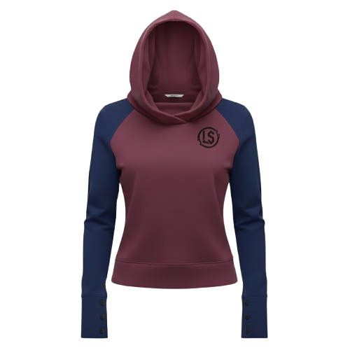 Add depth and sophistication to your casual wear with this striking pullover from Lupix Studios. Designed for supreme comfort and standout style, this hoodie features a dynamic color block design with a rich maroon/plum body contrasted by sleek navy blue raglan sleeves and a matching hood.